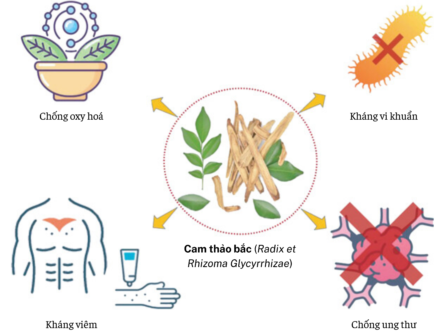 Ngược lại, Glycyrrhiza uralensis – loài cam thảo phổ biến tại Trung Quốc, thường được nghiên cứu trong bối cảnh y học cổ truyền và chủ yếu liên quan đến các tác dụng kháng virus, chống hen và điều hòa tâm thần kinh. Trong khi đó, Glycyrrhiza inflata hầu như vắng mặt trong các tài liệu dược lý hiện đại, có thể do mức độ sử dụng thương mại hạn chế và sản lượng khai thác thấp hơn. Nhìn chung, phần lớn các tác dụng dược lý mới đang được khám phá trên G. glabra và G. uralensis, tuy nhiên những phát hiện này chủ yếu dựa trên các nghiên cứu in vitro và tiền lâm sàng. Do đó, việc chuyển giao sang ứng dụng lâm sàng đòi hỏi nghiên cứu sâu hơn về hiệu quả, độc tính và đặc biệt là tính an toàn khi dùng liều cao, trong bối cảnh trên hợp chất glycyrrhizin có thể gây tăng huyết áp và hạ kali máu nếu không kiểm soát thích hợp.